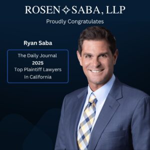 Rosen Saba, LLP proudly announces that Ryan Saba has been named one of the 2025 Top Plaintiff Lawyers in California by The Daily Journal for the fourth year in a row.