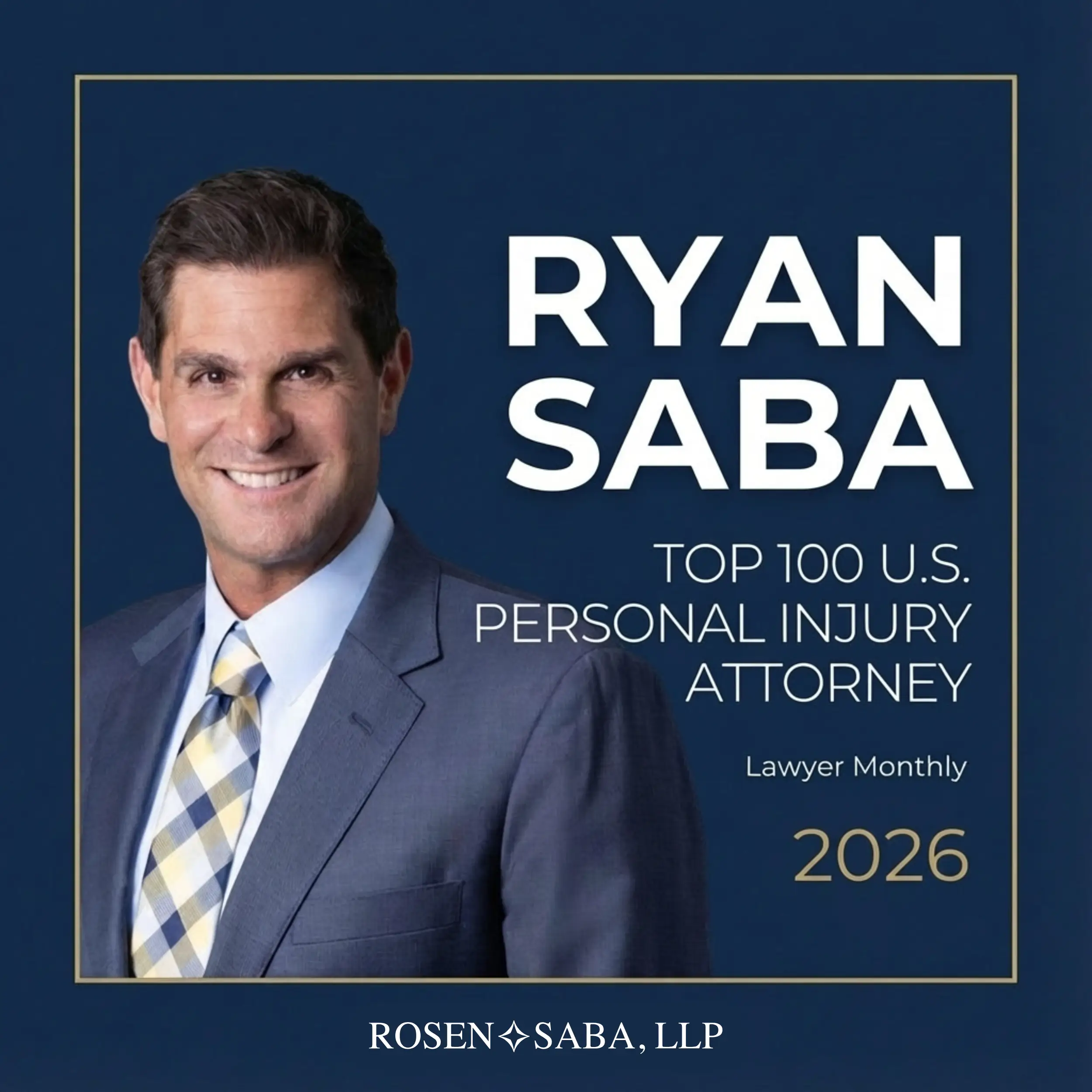 Rosen Saba, LLP is proud to congratulate Ryan Saba on being named one of the Top 100 Personal Injury Attorneys in the United States by Lawyer Monthly for 2026. You can read more about this recognition here.